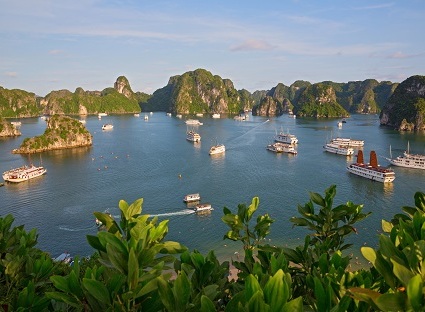 - 12:00: Прибытие в Халонг. Залив Халонг - одно из природных чудес света, включен ЮНЕСКО в список международного достояния человечества. В этой живописной бухте расположено около 2000 больших и маленьких островков с причудливыми скальными образованиями, таинственными пещерами и гротами, мангровыми лесами. Трансфер на корабль. Размещение. Приветственный напиток.