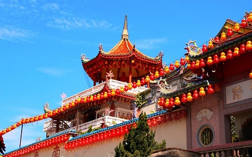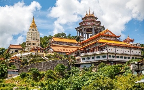 - Далее время на обед (обед за свой счет) Мы закончим это день на о. Пенанг посещением одного из крупнейших в Юго-Восточной Азии буддийского храма Кек Лок Си. Храм был открыт в 1905 году, а в целом строился в течение 40 лет с 1890 по 1930 годы. В результате долгого строительства в архитектуре соединились китайские, тайские, бирманские элементы и приемы зодчества, но все же по большему счету он считается китайским. Изюминкой храма является семиуровневая пагода Рамы VI, внутри которой находится пагода 10 000 Будд!!!, и 36-ти метровая статуя богини милосердия. Храм очень красив и интересен из-за своей разноплановой архитектуры и смешения стилей, осматривать его можно часами, настолько он огромный. Для того, чтобы подняться на самый верх к статуе богини милосердия, даже придется воспользоваться лифтом, хотя можно преодолеть подъем и пешком. Сверху открывается панорамный вид на Джорджтаун и остров. После посещения храма трансфер в аэропорт.