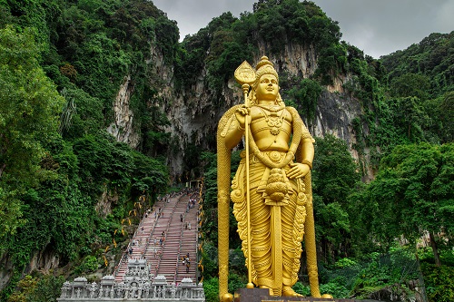 - Экскурсию в пещеры Бату, которые являются природной достопримечательностью Малайзии. Это одна из самых популярных индуистских святынь за пределами Индии. Всего насчитывается два десятка пещер. Вы увидите самую крупную в мире золотую статую индусского Бога Муругана – вечного борца за мир и справедливость. Подниметесь в Пещеру Храма, на пути которому встретите обезьян. На древнейшей фабрике олова можно поучаствовать в обработке олова. После чего гостей ждет посещение обзорной смотровой площадки на телебашне KL Menara, откуда открывается захватывающий дух вид на мегаполис и обед в панорамном ресторане Aras, расположенном в здании телебашни на высоте 282 метра.